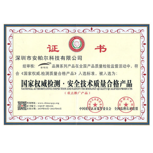 國(guó)家權(quán)威檢測(cè)安全技術(shù)質(zhì)量合格產(chǎn)品