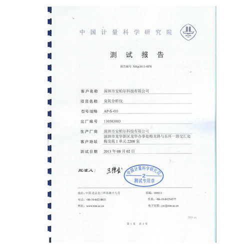 中國計量院臭氧檢測報告