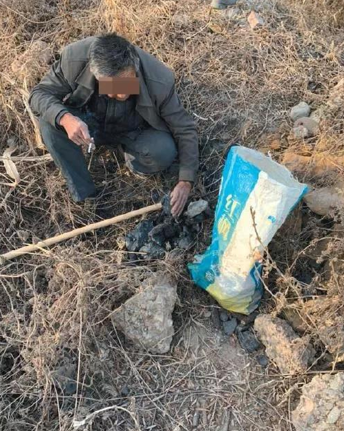 一位村民坐在丘上敲打,掀出一塊塊煤矸石,敲碎、分撿,裝進麻袋。他告訴記者,這些是今年煤礦的車倒下的,知道的村民會過來撿炭。“有的矸石已經(jīng)被黃土蓋住了,有的就直接推進黃河里了。”他稱,村子后山上還有大片矸石場,更多的村民會去那里撿。