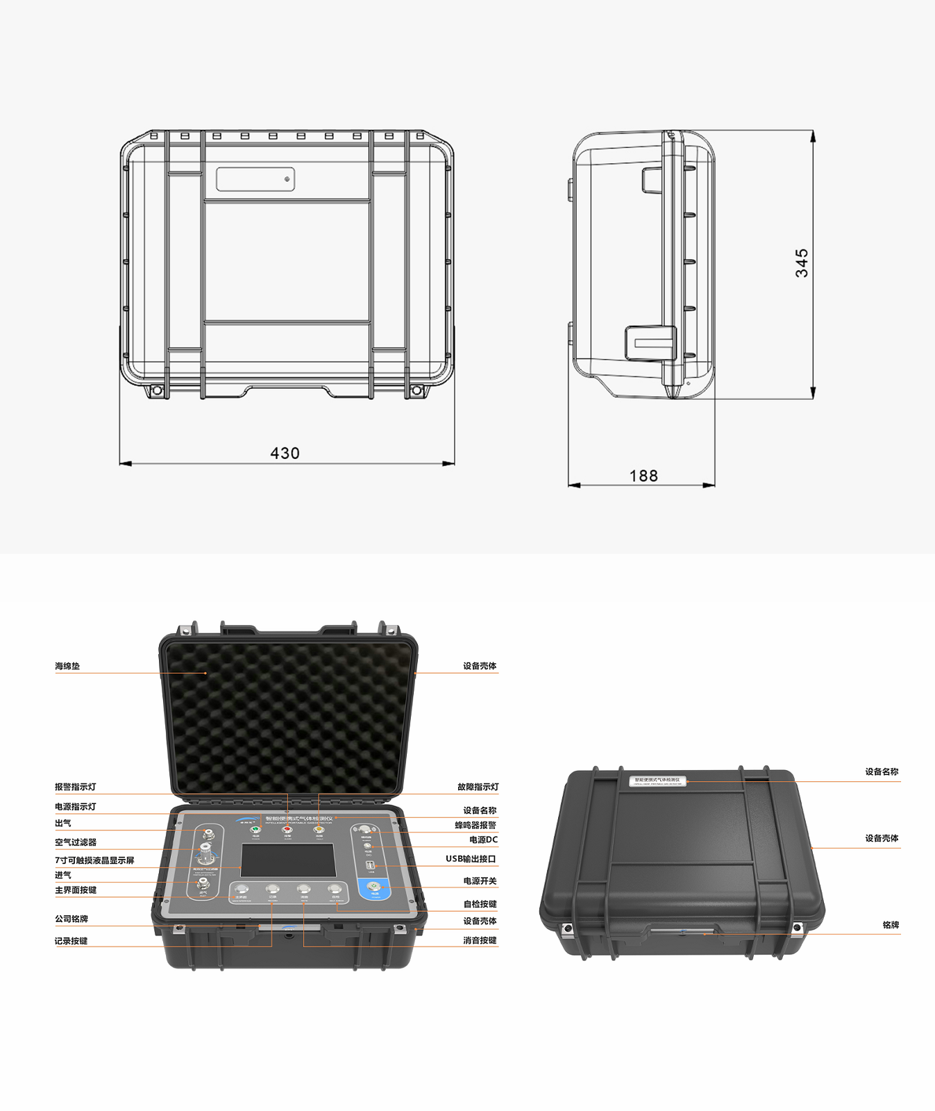 ☆  七寸彩色高清觸摸液晶顯示屏,可顯示檢測數據、報警信息、時間、溫度、存儲、電量、充電狀態等信息,對設備進行調節設置。