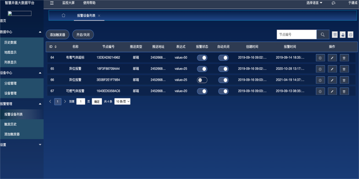 產品描述:智慧氣體監測安全云平臺以設備為核心,管理設備數據;支持多種設備傳輸協議,展示設備的實時數據和設備狀態;可快捷靈活的設置設備告警規則,設備告警后可通過多種方式快速發送報警通知,讓用戶第一時間收到報警信息,快速做出應對;基于強大的數據管理,用戶可快捷方便的對本平臺的實時數據,歷史數據等進行查看和分析,也支持通過設置第三方數據推送和openApi方式進行平臺的應用擴展;